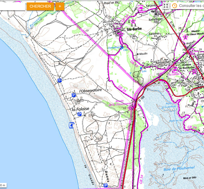 1- rando de 15 km en suivant le GR 34 direction de Penthièvre ,puis retour au parking par la cote ouest .